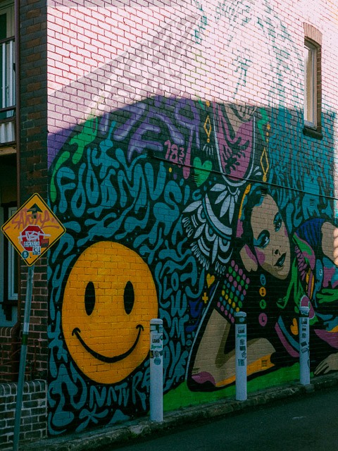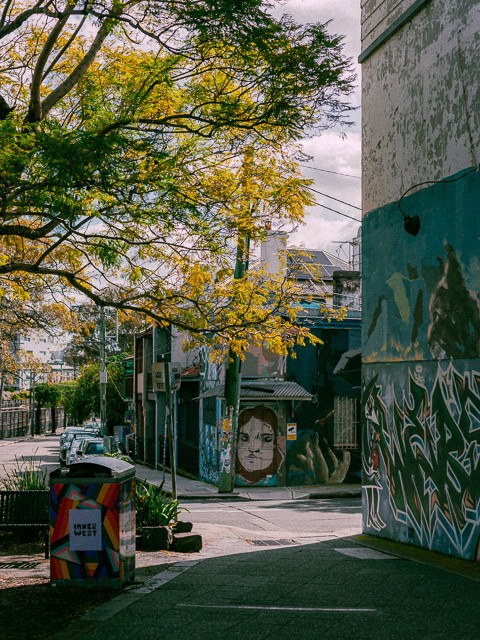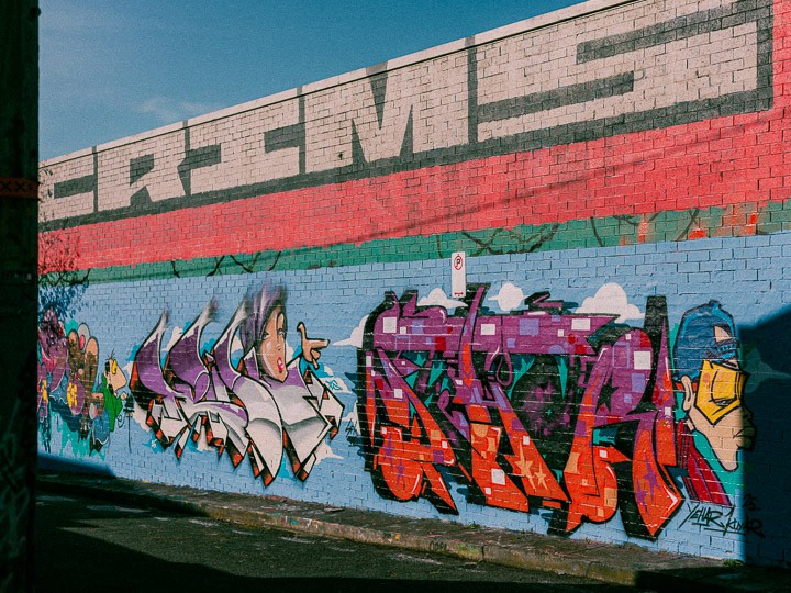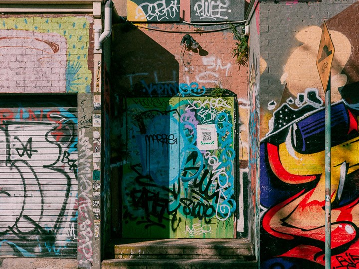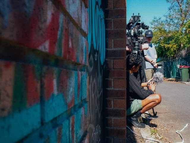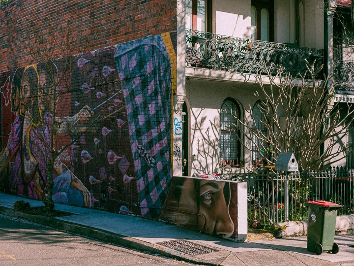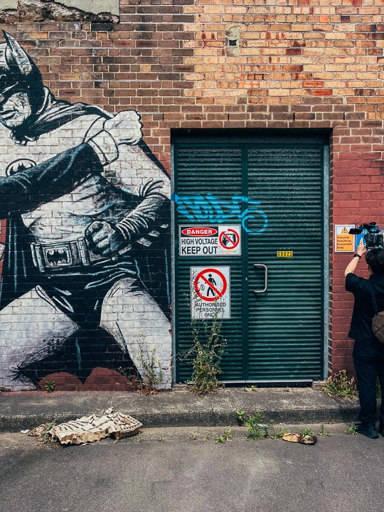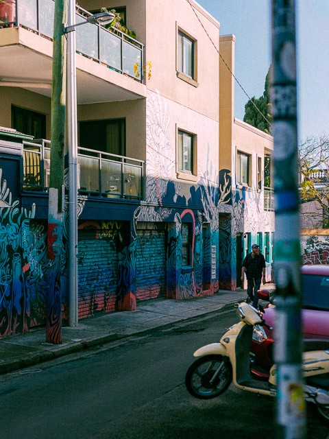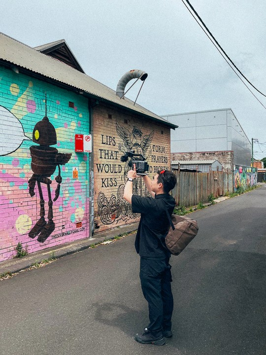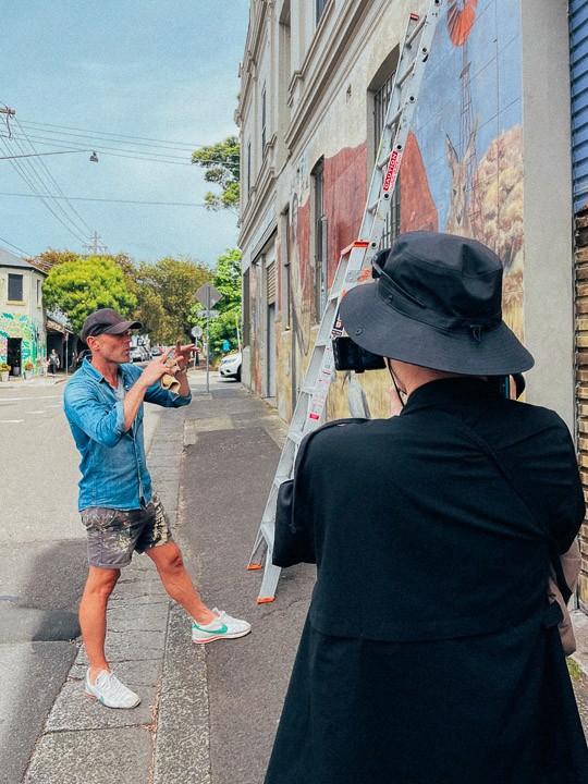 And many of the most crucial shots came from simply going out and sitting back at a spot for an unreasonable while to observe people interact with graffiti and murals. We hit those Inner West alleyways with the instincts of street photographers, treating every frame like it mattered way too much. Because for a film this well-thought-out, it just does.