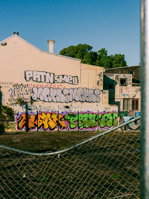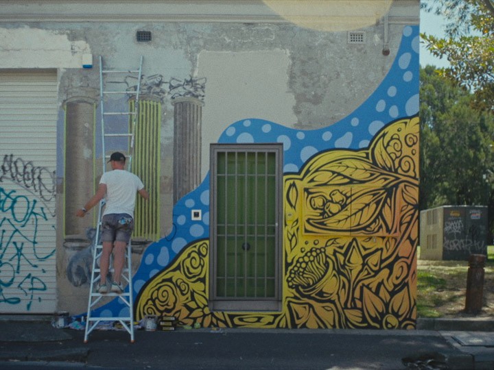 Rather than defaulting to the familiar grammar of graffiti docos, we said no to aggressive energy and shaky cam for our own sake. What's the real difference anyway, between a piece of street art and one hung in a gallery, only to be stared at in utter silence? Perhaps slightly grainier and infinitely more raw, but surely not more noise.
