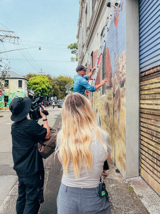 Working with a producer is decently nice. There's a reason I haven't mentioned much pre-production, how we got in touch with Mistery, Oliver Wall, and, for a while, also Phibs and Spice, two of Sydney's more notable muralists, or the logistics, project timeline, and all those snacks and water on shoot days. That's because it's Georgia's work.